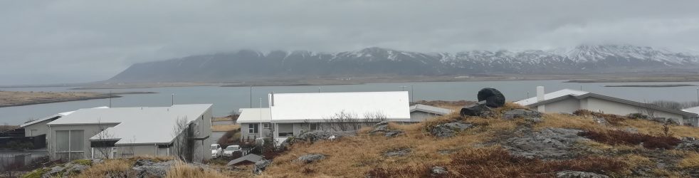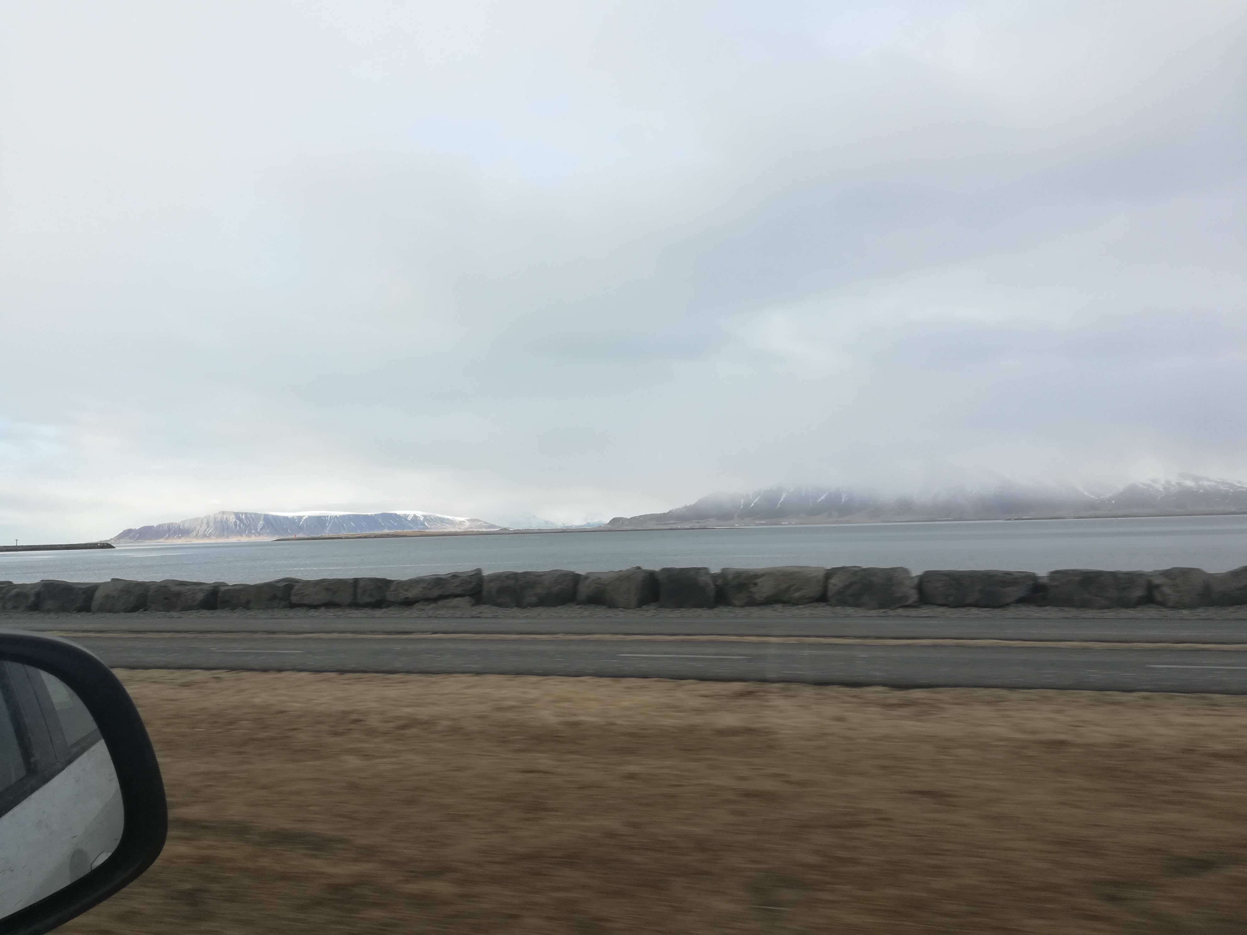 When I was done with my classes I still had time waiting Jón’s to end, so I took a walk down the hill till. The view from my school is phenomenal – when you walk through a little neighborhood in the area you get to see the mountains without hindrance. It was windy and raining, and not wanting to get my shoes any more wet I kept my distance from the water line. Even then there was just a lonely road and a field of crass between it and me. After adoring the scenery and foot it a while I catched up with Jón at the school to get a ride home. The weather outside got even worse during our trip back to Kópavogur.